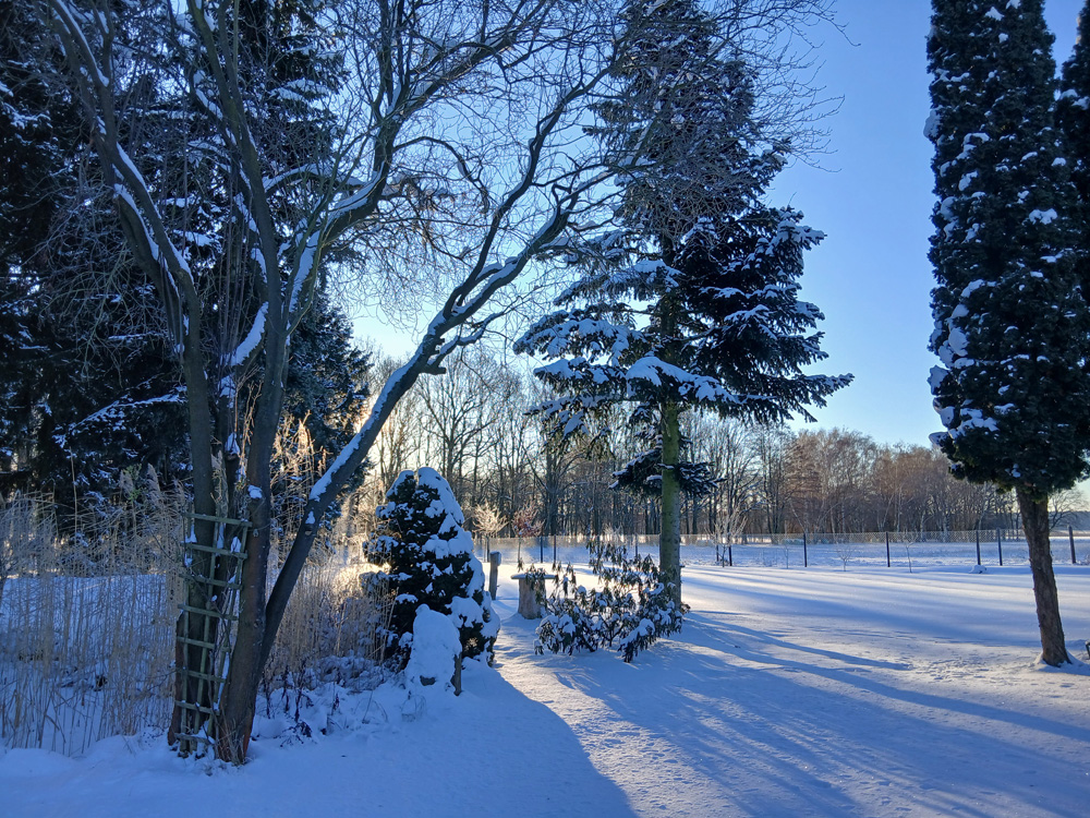 Das neue Jahr ist nun schon ein paar Tage alt und der Winter zeigt sich von seiner schönen Seite. Es liegen ca. 20 cm Schnee, die Bäume sind Schnee bedeckt und die Sonne scheint.